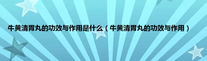 本文,牛黄清胃丸的功效与作用是什么,牛黄清胃丸的功效与作用到此就分享完毕,希望对大家有所帮助。