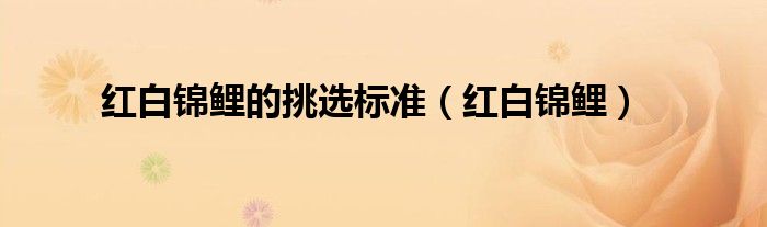 以上就是【红白锦鲤的挑选标准,红白锦鲤】相关内容。