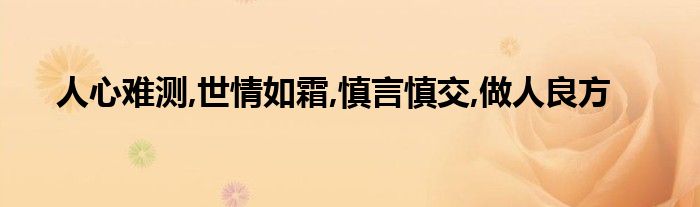 大家好,小问来为大家解答以上问题。人心难测,世情如霜,慎言慎交,做人良方这个很多人还不知道,现在让我们一起来看看吧!
