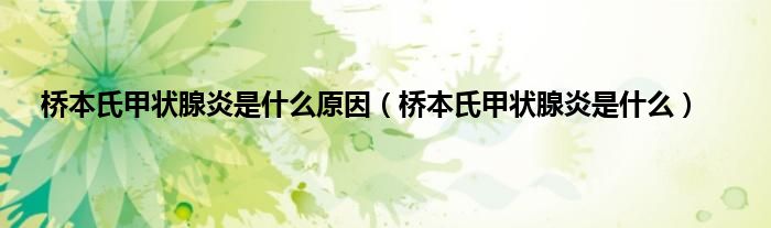 本文,桥本氏甲状腺炎是什么原因,桥本氏甲状腺炎是什么到此就分享完毕,希望对大家有所帮助。