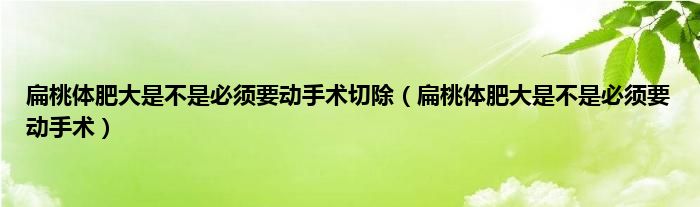 本文,扁桃体肥大是不是必须要动手术切除,扁桃体肥大是不是必须要动手术到此就分享完毕,希望对大家有所帮助。