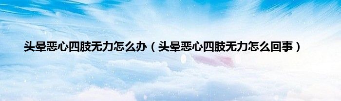 本文,头晕恶心四肢无力怎么办,头晕恶心四肢无力怎么回事到此就分享完毕,希望对大家有所帮助。