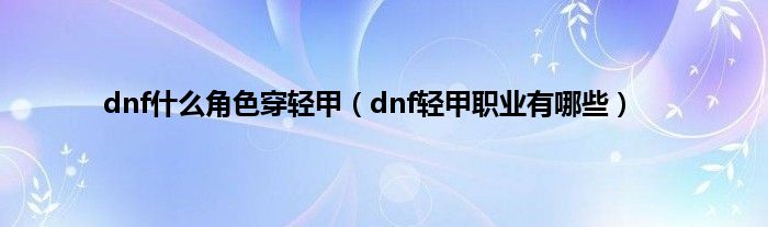 以上就是【dnf什么角色穿轻甲,dnf轻甲职业有哪些】相关内容。