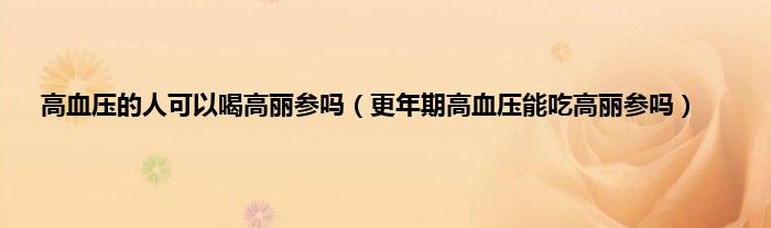 本文,高血压的人可以喝高丽参吗,更年期高血压能吃高丽参吗到此就分享完毕,希望对大家有所帮助。