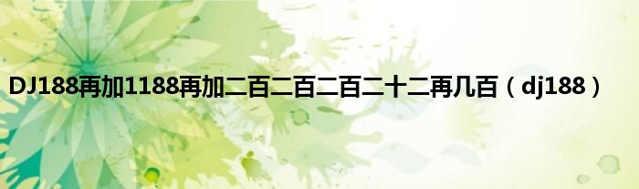 大家好,小问来为大家解答以上问题。DJ188再加1188再加二百二百二百二十二再几百,dj188这个很多人还不知道,现在让我们一起来看看吧!