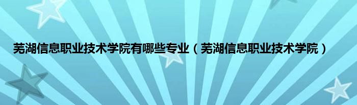 大家好,小问来为大家解答以上问题。芜湖信息职业技术学院有哪些专业,芜湖信息职业技术学院这个很多人还不知道,现在让我们一起来看看吧!