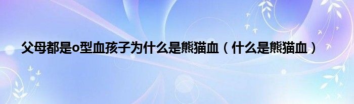 大家好,小问来为大家解答以上问题。父母都是o型血孩子为什么是熊猫血,什么是熊猫血这个很多人还不知道,现在让我们一起来看看吧!