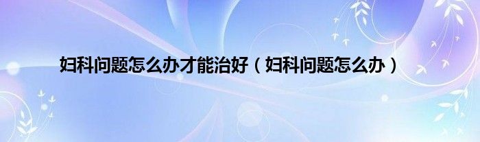 本文,妇科问题怎么办才能治好,妇科问题怎么办到此就分享完毕,希望对大家有所帮助。