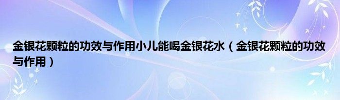 大家好,金银花颗粒的功效与作用小儿能喝金银花水,金银花颗粒的功效与作用很多人还不知道,现在让我们一起来看看吧!