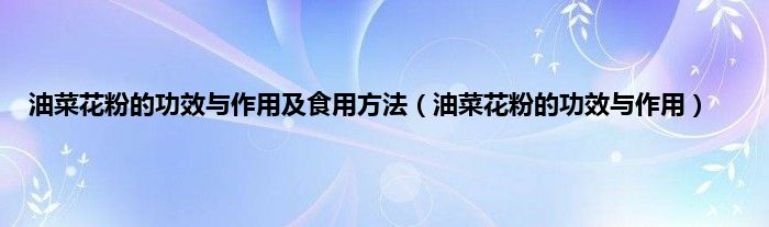 本文,油菜花粉的功效与作用及食用方法,油菜花粉的功效与作用到此就分享完毕,希望对大家有所帮助。