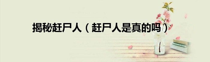 以上就是【揭秘赶尸人,赶尸人是真的吗】相关内容。
