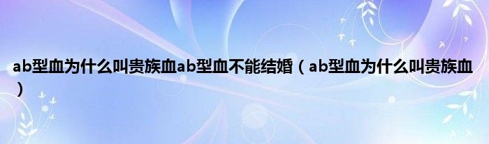 本文,ab型血为什么叫贵族血ab型血不能结婚,ab型血为什么叫贵族血到此就分享完毕,希望对大家有所帮助。