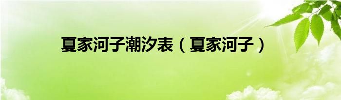 以上就是【夏家河子潮汐表,夏家河子】相关内容。