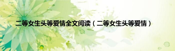 以上就是【二等女生头等爱情全文阅读,二等女生头等爱情】相关内容。