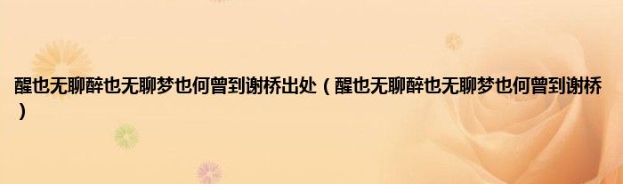 醒也无聊醉也无聊梦也何曾到谢桥出处(醒也无聊醉也无聊梦也何曾到谢桥)
