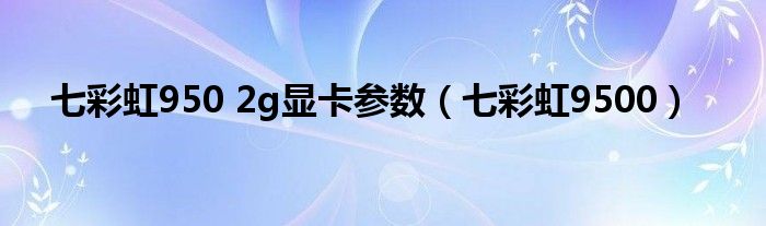 大家好,小问来为大家解答以上问题。七彩虹950 2g显卡参数,七彩虹9500这个很多人还不知道,现在让我们一起来看看吧!