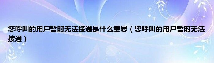 以上就是【您呼叫的用户暂时无法接通是什么意思,您呼叫的用户暂时无法接通】相关内容。