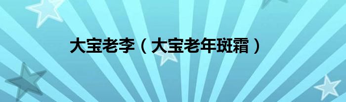 以上就是【大宝老李,大宝老年斑霜】相关内容。