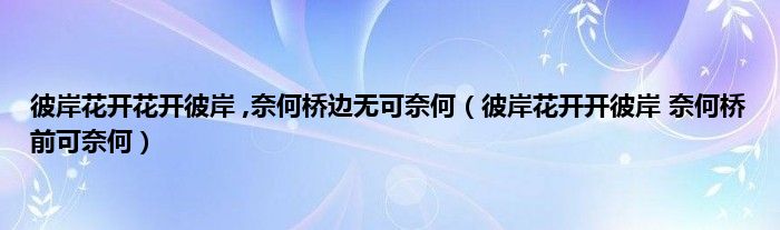 以上就是【彼岸花开花开彼岸 ,奈何桥边无可奈何,彼岸花开开彼岸 奈何桥前可奈何】相关内容。