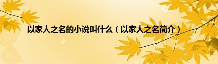 本文,以家人之名的小说叫什么,以家人之名简介到此就分享完毕,希望对大家有所帮助。