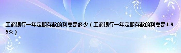 本文,工商银行一年定期存款的利息是多少,工商银行一年定期存款的利息是1.95%到此就分享完毕,希望对大家有所帮助。