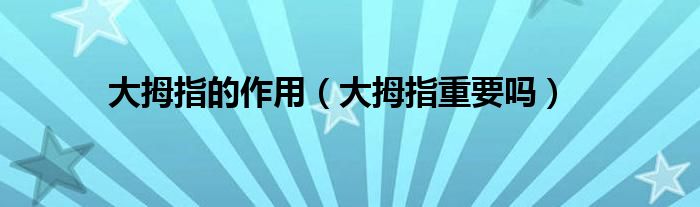 大家好,大拇指的作用,大拇指重要吗很多人还不知道,现在让我们一起来看看吧!