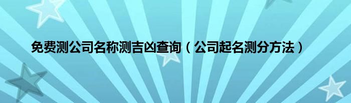 本文免费测公司名称测吉凶查询,公司起名测分方法到此分享完毕,希望对大家有所帮助。