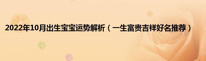 大家好,综合小编来为大家讲解下。2022年10月出生宝宝运势解析,一生富贵吉祥好名推荐这个很多人还不知道,现在让我们一起来看看吧!