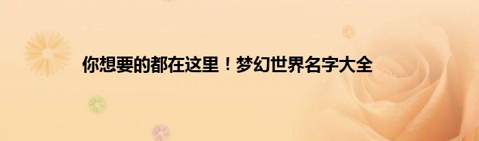 本文你想要的都在这里!梦幻世界名字大全到此分享完毕,希望对大家有所帮助。