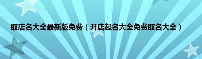 大家好,综合小编来为大家讲解下。取店名大全最新版免费,开店起名大全免费取名大全这个很多人还不知道,现在让我们一起来看看吧!