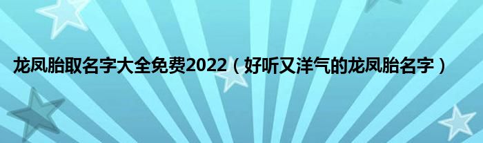 本文龙凤胎取名字大全免费2022,好听又洋气的龙凤胎名字到此分享完毕,希望对大家有所帮助。