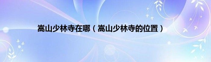 本文,嵩山少林寺在哪,嵩山少林寺的位置到此就分享完毕,希望对大家有所帮助。