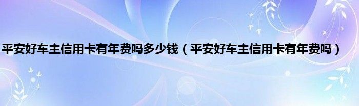 本文,平安好车主信用卡有年费吗多少钱,平安好车主信用卡有年费吗到此就分享完毕,希望对大家有所帮助。