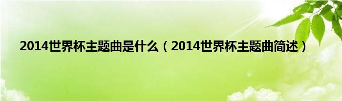 本文,2014世界杯主题曲是什么,2014世界杯主题曲简述到此就分享完毕,希望对大家有所帮助。