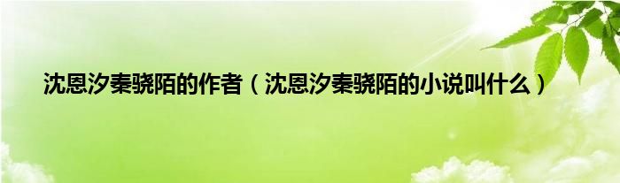 大家好,沈恩汐秦骁陌的作者,沈恩汐秦骁陌的小说叫什么很多人还不知道,现在让我们一起来看看吧!
