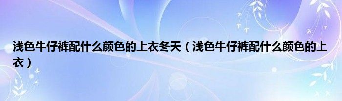 大家好,浅色牛仔裤配什么颜色的上衣冬天,浅色牛仔裤配什么颜色的上衣很多人还不知道,现在让我们一起来看看吧!