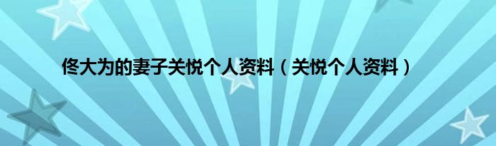 本文,佟大为的妻子关悦个人资料,关悦个人资料到此就分享完毕,希望对大家有所帮助。