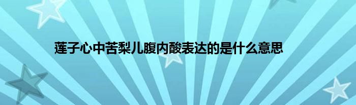 大家好,莲子心中苦梨儿腹内酸表达的是什么意思很多人还不知道,现在让我们一起来看看吧!