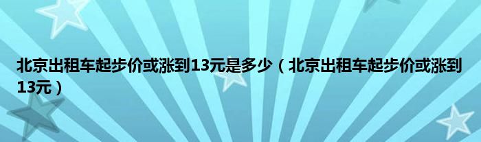 大家好,北京出租车起步价或涨到13元是多少,北京出租车起步价或涨到13元很多人还不知道,现在让我们一起来看看吧!