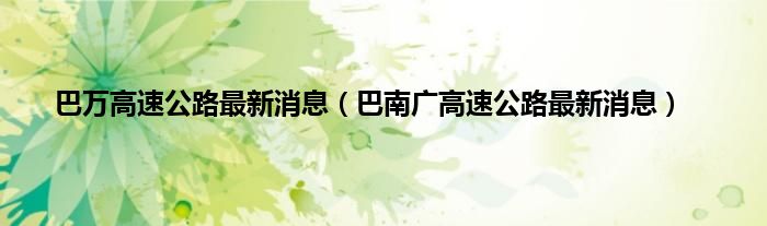 本文,巴万高速公路最新消息,巴南广高速公路最新消息到此就分享完毕,希望对大家有所帮助。