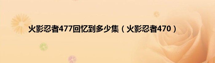 大家好,小问来为大家解答以上问题。火影忍者477回忆到多少集,火影忍者470这个很多人还不知道,现在让我们一起来看看吧!