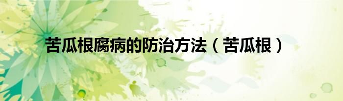 以上就是【苦瓜根腐病的防治方法,苦瓜根】相关内容。