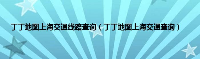 以上就是【丁丁地图上海交通线路查询,丁丁地图上海交通查询】相关内容。