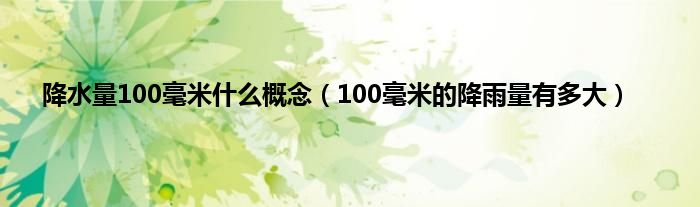 本文,降水量100毫米什么概念,100毫米的降雨量有多大到此就分享完毕,希望对大家有所帮助。