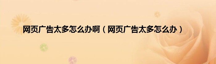 以上就是【网页广告太多怎么办啊,网页广告太多怎么办】相关内容。