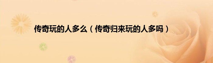 大家好,小问来为大家解答以上问题。传奇玩的人多么,传奇归来玩的人多吗这个很多人还不知道,现在让我们一起来看看吧!