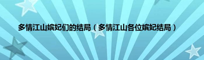 大家好,多情江山嫔妃们的结局,多情江山各位嫔妃结局很多人还不知道,现在让我们一起来看看吧!