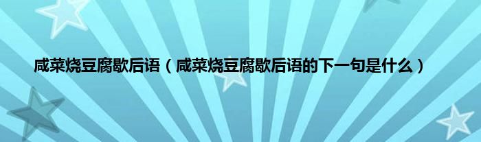 本文,咸菜烧豆腐歇后语,咸菜烧豆腐歇后语的下一句是什么到此就分享完毕,希望对大家有所帮助。