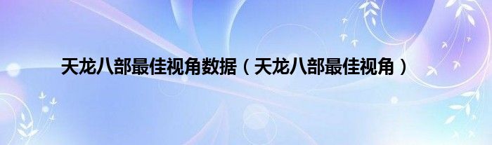 大家好,小问来为大家解答以上问题。天龙八部最佳视角数据,天龙八部最佳视角这个很多人还不知道,现在让我们一起来看看吧!