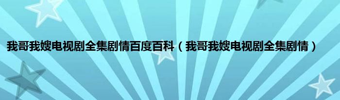 本文,我哥我嫂电视剧全集剧情百度百科,我哥我嫂电视剧全集剧情到此就分享完毕,希望对大家有所帮助。